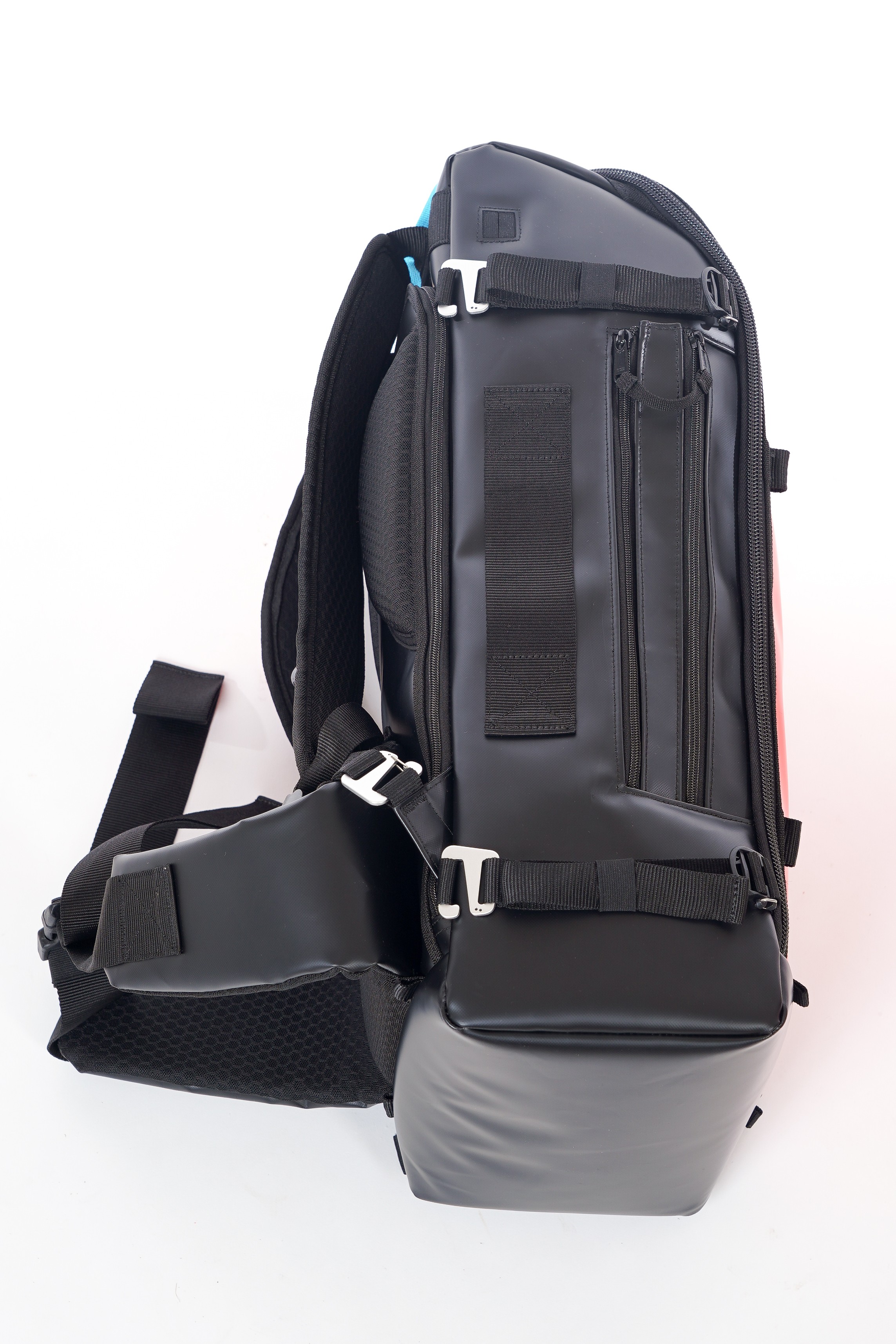 - Poches latérales intérieures en toile épaisse avec ouverture extérieure double zip pour crampons, broches…